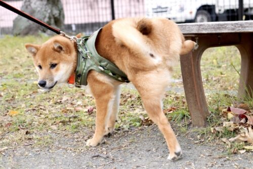 わんちゃんが足を上げて