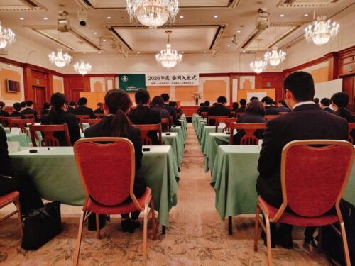 今日は合同入社式にも